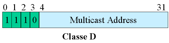 - Classe D: Multicast ( 224 e 239)