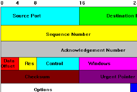 - Data offset: indica il numero di parole da 32 bit che compongono la testata di TCP.